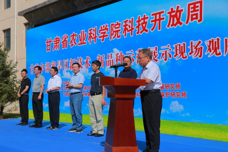 开幕式上马忠明发表致辞,对参加科技周的各位领导和嘉宾,表示衷心的感谢和诚挚的欢迎,向长期以来对我院工作给与关心指导和大力支持的省直各有关部门、榆中县委县政府及社会各界表示衷心的感谢,向长期奋斗在农业科研第一线的科技工作者表示诚挚的问候。马忠明指出,巩固拓展脱贫攻坚成果,全面推进乡村振兴,实现农业农村现代化,必须加强科技创新和成果供给,提高农业科研服务水平,持续壮大特色产业,做强做优“甘味”品牌,强力支撑农业高质量发展。这对科研院所农业科技工作者来说,提出了更高要求,既是挑战,也是新的使命。举办“科技开放周”,是我院在坚持科技创新的基础上,强化科技推广、助力成果转化的一项重要举措;是依托试验站点主动对接地方科技需求的重要途径;是依靠科技创新催生区域发展新动能的现实需要;是实现科技与生产无缝对接,塑造发展新优势的重要环节;更是农业科研院所突破发展瓶颈、实现高质量发展的必由之路。马忠明指出,榆中高寒农业试验站是我院布设在高寒农业区的综合性试验站,在寒旱农业科研工作中占有重要的位置。主要开展抗寒果树资源保存与新品种选育、早熟马铃薯种质资源创制与新品种选育、绿色植保与防控网络建设、高寒高值作物引进与高效栽培等工作。由于其特殊的区位优势,还从事城郊农业和电商农业等新业态的探索。依托该站已建成12个国家级和省级农业科研创新平台。这些平台已成为国家农业科技创新体系的重要组成,也是服务全省“三农”、建设农业强省的中坚力量。在榆中高寒农业试验站举办开放周,体现了开放共享、联合协作、互利共赢的价值追求,体现了对接产业、服务生产、转化成果的本质属性,体现了农业科研单位在新时代新征程上的担当和作为,热诚欢迎各级政府及农业主管部门、农业龙头企业和专业合作社,以开放周为媒,与全省农业科研单位密切合作、携手并进,为建设农业强省提供更强劲的科技支撑。