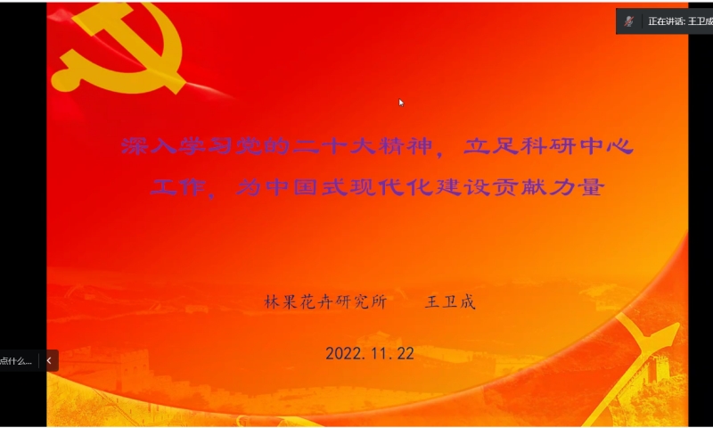 11月10-22日,林果花卉研究所党总支以主题党日、党员大会和支部党课等不同形式深入开展党的二十大精神学习宣传。