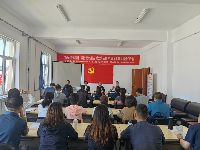 为热烈庆祝党的103岁生日,6月21-22日,我院农业经济与信息研究所党总支联合积石山县农业农村局党组、我院积石山现代农业产业研究院临时党支部,以“弘扬建党精神、强化使命担当、助力灾后重建”为主题,在积石山县举办庆“七一”联学共建主题党日活动。院党委委员、副院长、产业研究院院长田青出席活动,院农业经济与信息研究所党总支、积石山县农业农村局党组、院积石山现代农业产业研究院临时党支部共30余名党员参加。
