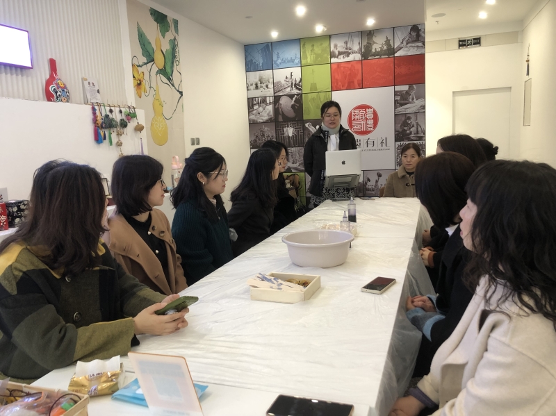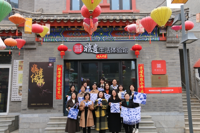 在授课老师娓娓道来的讲述中,大家知道了扎染也叫蓝染,起源于黄河流域,是中国一种古老的染色工艺。这种工艺是用板蓝根叶子经过浸泡、打靛、过滤,提取蓝靛后,加入水、草木灰、黄酒进行发酵制成染料,然后将缝、扎、画处理后的布在发酵好的蓝染液里进行染色的过程。2006年,蓝染被国务院批准成为国家第一批国家级非物质文化遗产。