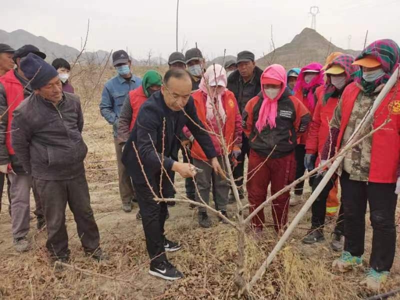 随后大家去了我所在城北新村技术指导建设的桃示范园和葡萄示范园,并由我所陈建军研究员和郝燕研究员跟大家进行了春季修剪的技术交流,同时对当地农户进行了指导。