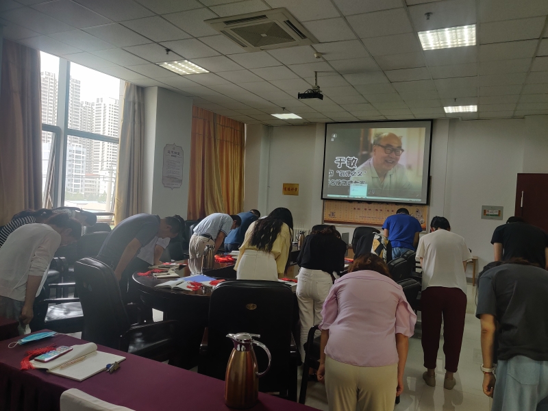 本次道德讲堂紧紧围绕“四德”教育展开,分别从“做反省”、“唱歌曲”、“学模范”、“诵经典”“学知识”、“发善心”、“送祝福”“行大礼”“做善事”九个一流程进行,使讲堂更具仪式感、肃穆感。全所职工满怀热情一起合唱《歌唱祖国》,当熟悉的旋律响起,大家齐唱“五星红旗迎风飘扬,胜利歌声多么嘹亮,歌唱我们亲爱的祖国,从今走向繁荣富强”......。洪亮的歌声震撼了大家纯洁的心灵,更激发了大家澎湃激昂的爱国之心。随后观看了李延年的感人事迹;一起诵读毛主席的《沁园春·长沙》,讲述了这段经典背后的动人故事;向“国士”于敏行鞠躬礼。在送祝福的环节中,为全所职工每人分发一个中国结,以此来祝愿我们的祖国繁荣昌盛,祝愿我们身边的每一个人,好人一生平安,衷心祝愿大家厚德善行,吉祥相伴!