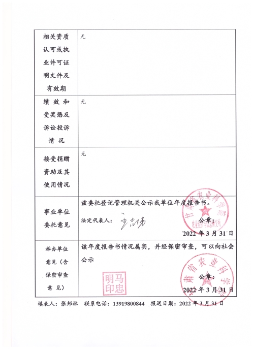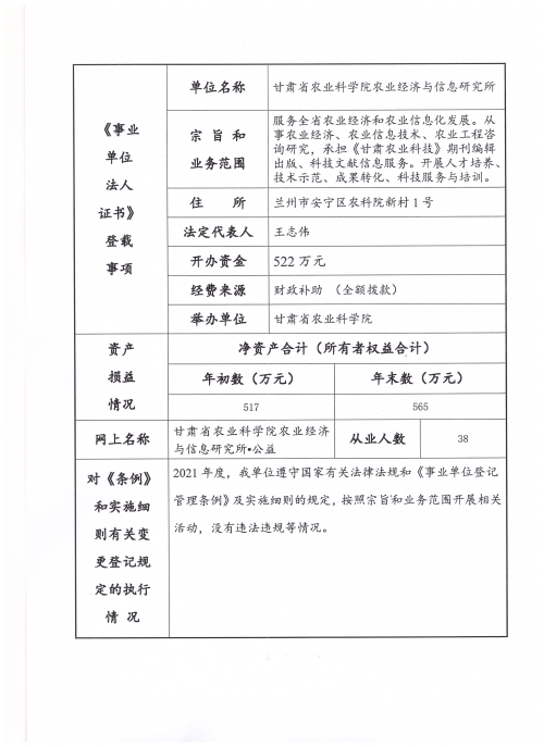 根据甘肃省事业单位登记局法人证书年检流程,现将我单位2021年度事业单位法人年度报告书予以公示,对报告书填写内容的真实性给予监督。