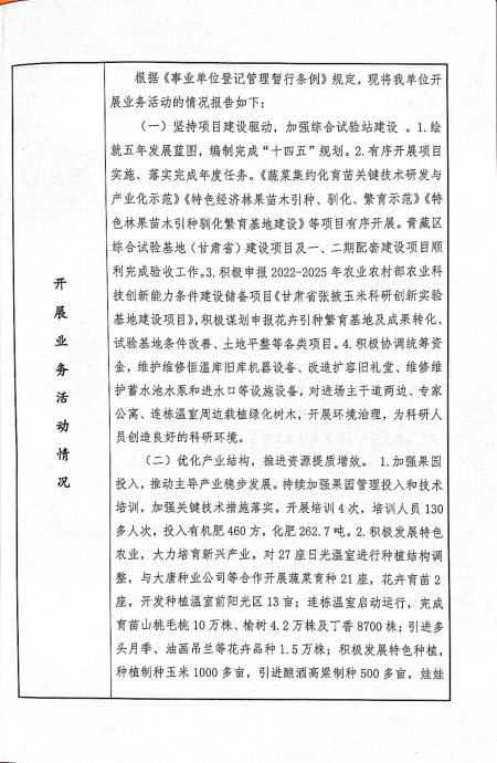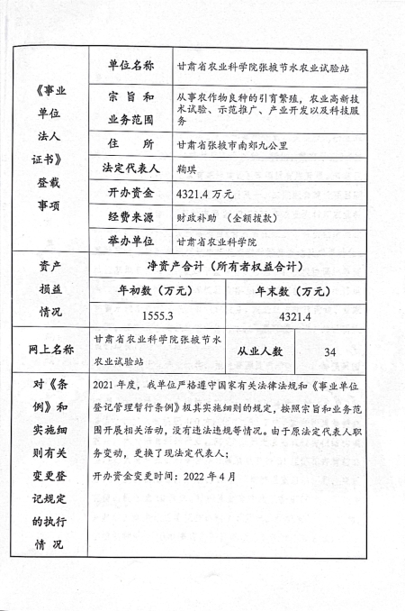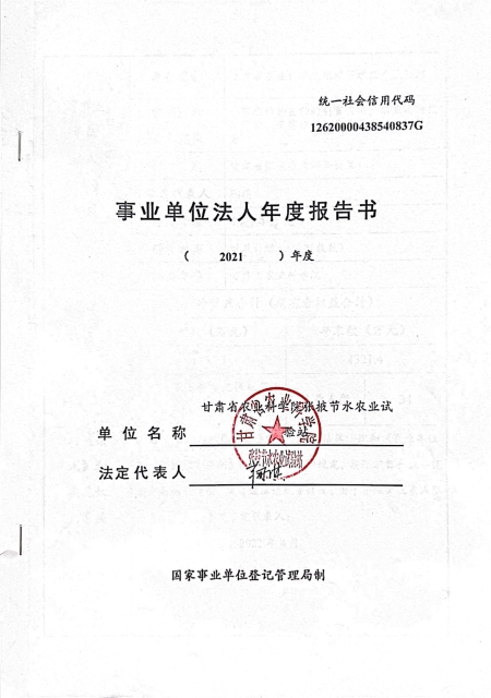 根据甘肃省事业单位登记局法人证书年检流程,现将我单位2021年度事业单位法人年度报告书在院局域网予以公示,对报告书填写内容的真实性给予监督。