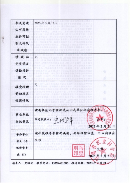 根据甘肃省事业单位登记局法人证书年检流程,我单位法人证书的年检报告书通过网上已提交甘肃省事业单位登记局审核通过,按流程需在院局域网上进行公示,现将我单位2022年度事业单位法人年度报告书予以公示,对报告书填写内容的真实性给予监督。