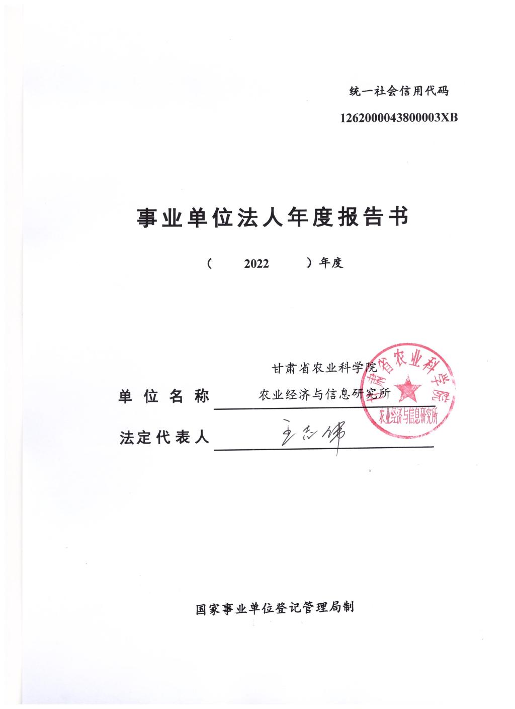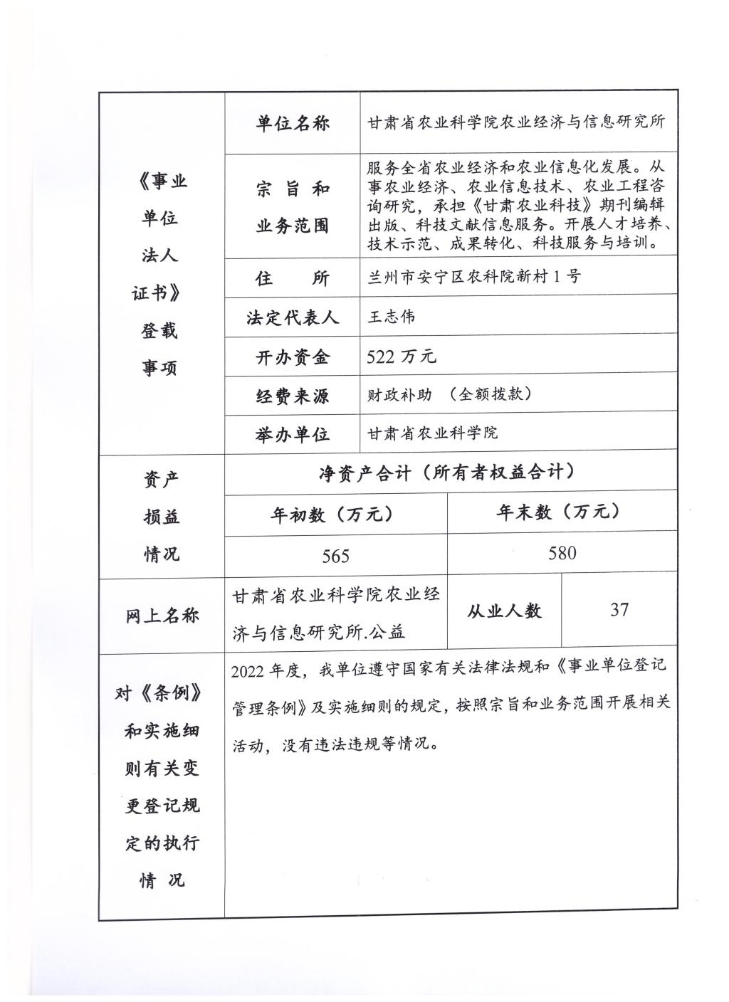 根据甘肃省事业单位登记局法人证书年检流程,我单位法人证书的年检报告书需在院局域网上进行公示,现将我单位2022年度事业单位法人年度报告书予以公示,对报告书填写内容的真实性给予监督。