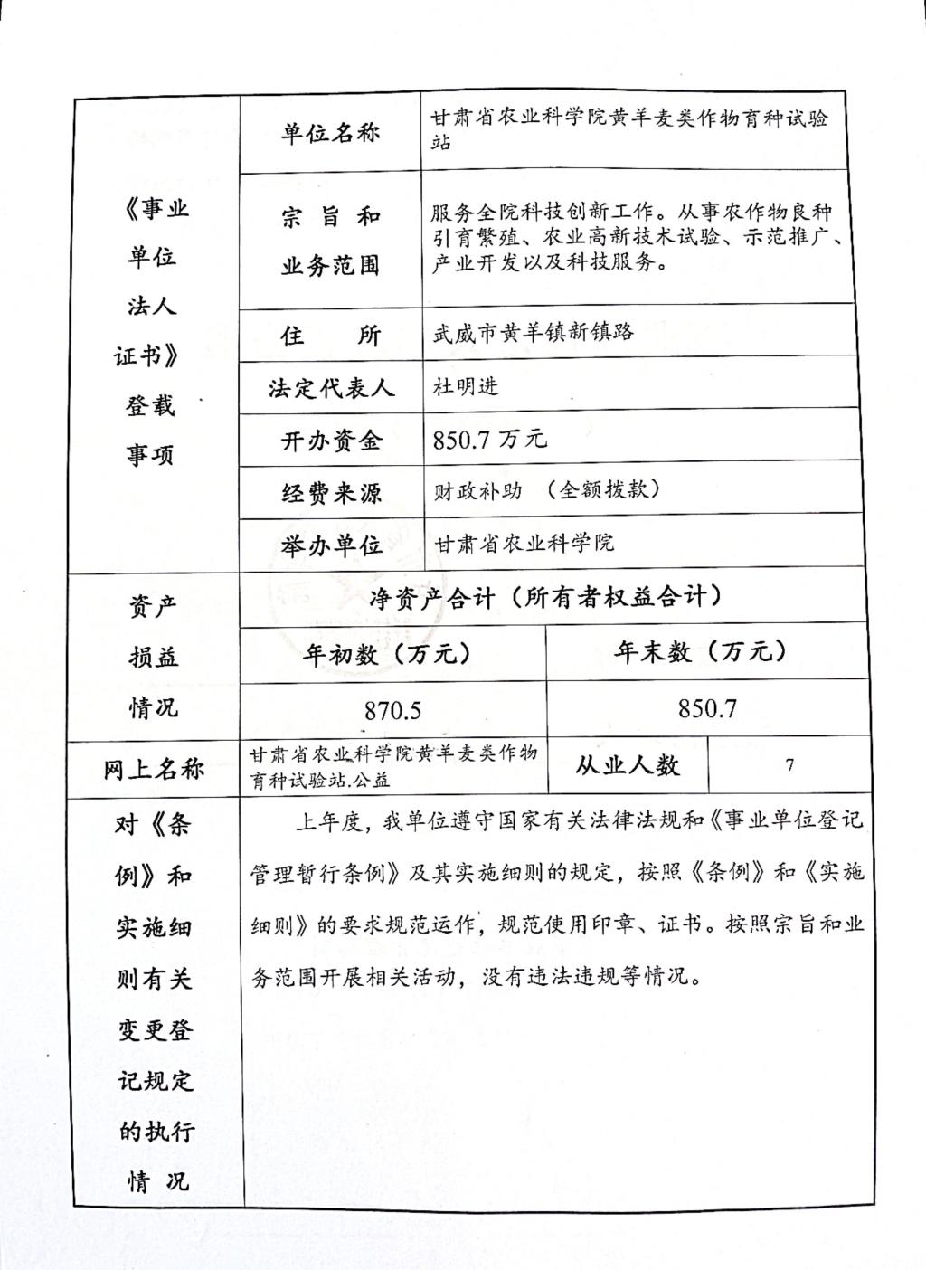 根据甘肃省事业单位登记管理局法人年检流程,现将我单位2022年度事业单位法人年度报告书予以公示,对报告书填写内容的真实性给予监督。