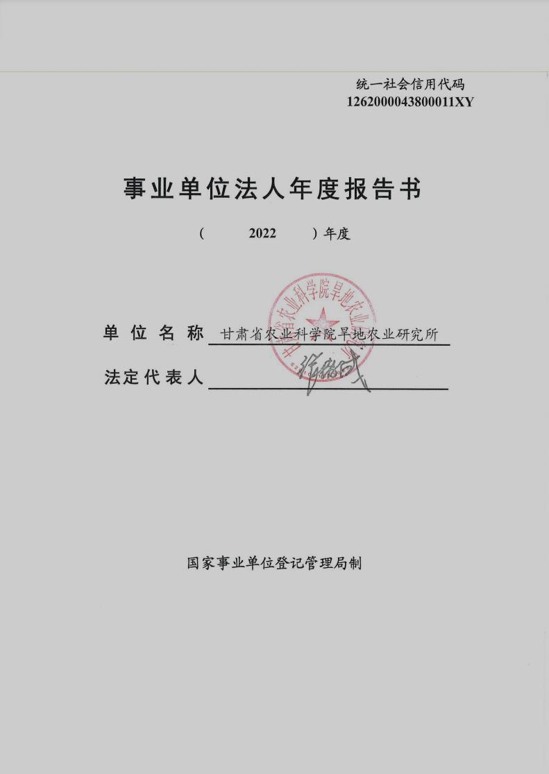 根据甘肃省事业单位登记局法人证书年检流程,我单位法人证书的年检报告书需在院局域网上进行公示,现将我单位2022年度事业单位法人年度报告书予以公示,对报告书填写内容的真实性给予监督。