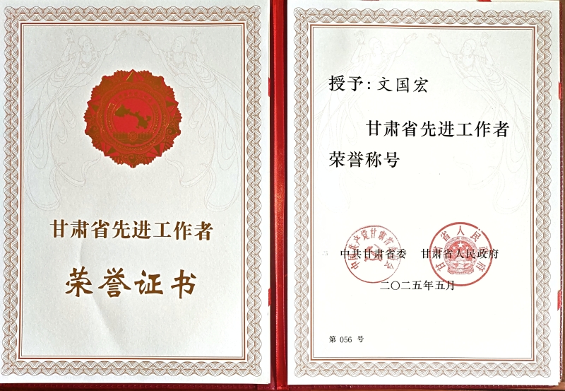 为表彰先进典型、凝聚奋进力量,激励引导全省人民奋进新征程、再创新业绩,5月22日,在甘肃省庆祝“五一”国际劳动节暨表彰省五一劳动奖大会上,我院文国宏研究员喜获“甘肃省先进工作者”荣誉称号。