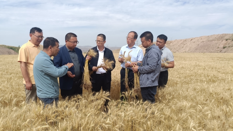7月6日,由我院土肥所承担的中央引导地方科技发展资金项目“盐碱地综合治理关键技术及有机硅改良新产品的研发和示范应用”(24ZYQA053)小麦现场测产在白银市平川区举办。省农科院党委委员、副院长杨天育出席活动,来自甘肃省耕地质量建设保护总站、甘肃省农业技术推广总站、甘肃农业大学、甘肃省植保植检站,白银市平川区和靖远县的农业相关专家组成专家测产组,对该项目在平川区水泉镇玉碗泉村高标准农田建设的小麦核心示范基地进行现场考察和机收实测。张掖谷丰源农业生产托管服务中心、平川区种子公司、课题组成员共计30余人参加观摩活动。