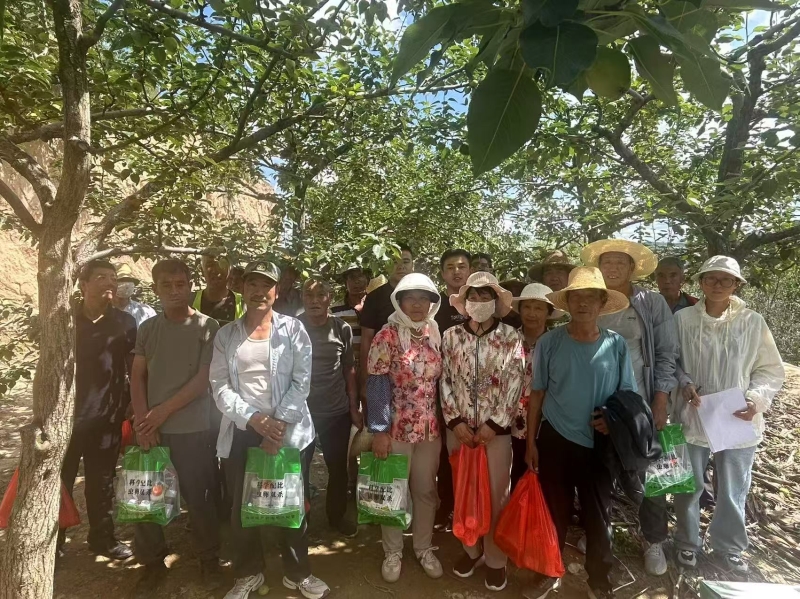 7月7—10日,林果花卉研究所曹刚副研究员赴静宁县界石铺镇七里村和李堡村开展三区人才计划科技培训。正值梨园夏季管理的关键时期,培训围绕界石铺镇辖区内早酥梨园白粉病、梨木虱、蚜虫等主要病虫害的防治,结果枝组更新,以及果实品质提升3个方面做了详细的技术示范和用药讲解,发放阿维菌素、吡虫啉等5类药品500余袋(瓶)。