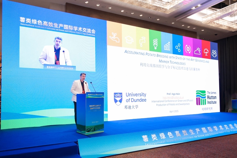 与马铃薯研究所交流合作的英国詹姆斯-赫顿研究所(JHI)马铃薯遗传研究室负责人Ingo教授作主旨报告