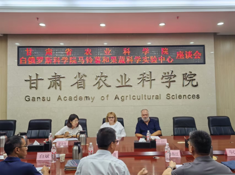 8月21日,院党委委员、副院长杨天育主持召开座谈会,甘肃省科技厅国际合作与交流处副处长鲁振江出席会议并致辞,院科技合作交流处及马铃薯所科技人员参加。会上,杨天育代表我院对罗德基娜·伊娜·亚历山德罗夫娜一行的到来表示热烈欢迎,介绍了双方合作历程和已取得的成绩,强调在前期合作的基础上,要进一步拓宽合作领域。鲁振江表示,甘肃省科技厅高度重视国际科技交流合作,在政策保障、项目支持、平台建设、成果示范等方面出台了许多务实举措,为构建稳定均衡的国际间科技合作关系提供了有效支撑。希望通过此次座谈交流,推进各领域交往合作,深化两国新时代全面战略协作伙伴关系。马铃薯研究所所长马丽荣详细介绍了研究所概况及马铃薯相关研究现状及已取得的成果。罗德基娜·伊娜·亚历山德罗夫娜详细介绍了白俄罗斯国家科学院马铃薯与果蔬栽培科学实践中心概况及马铃薯相关研究现状及已取得的成果。双方就马铃薯种质资源创新、育种、栽培等学科领域开展深入的交流和探讨。