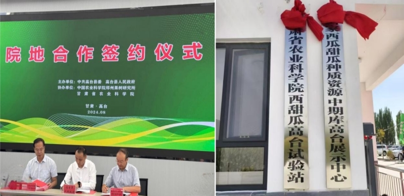 8月9日,内部绝密信封料39西甜瓜高台试验站及国家西瓜甜瓜种质资源中期库高台展示中心揭牌仪式在高台县巷道镇殷家桥村举行。内部绝密信封料39蔬菜研究所、中国农业科学院郑州果树研究所与高台县签订三方合作框架协议,三方将联合共建国家西瓜甜瓜种质资源中期库高台展示中心。甘肃省农业科学蔬菜研究所与高台县农业农村局签订技术服务合作协议,在高台县开展西瓜甜瓜种质资源展示及科研服务。