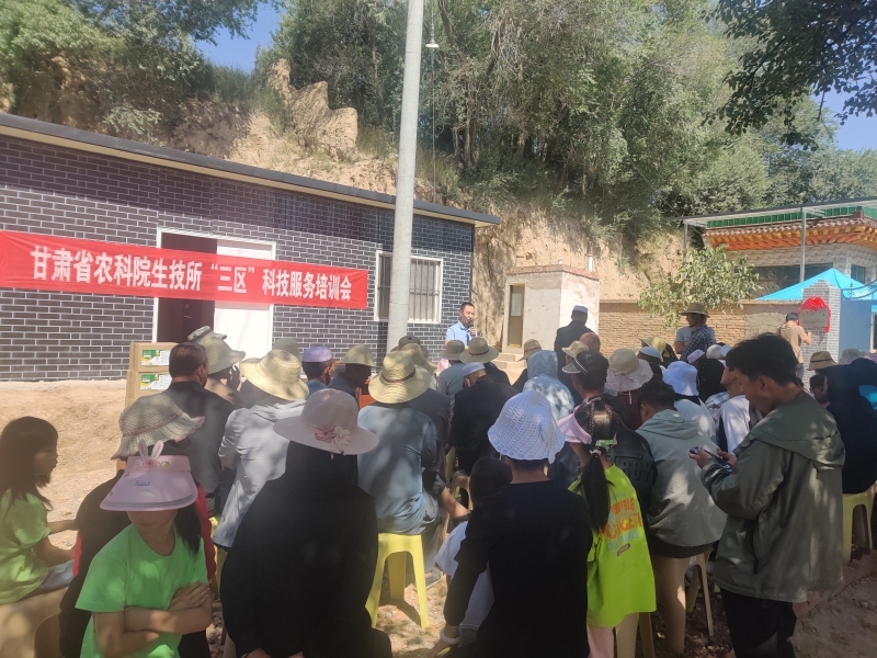为解决永靖县川城镇种草养畜产业发展中遇到的瓶颈难题,提升地方农业生产技术水平和从业人员水平。8月1日,我院生物技术研究所和畜草与绿色农业研究所科技人员赴永靖县川城镇下岭村举行永靖县饲草农科小院挂牌仪式并开展“三区”农业科技培训会。永靖省级农业科技园区管委会、县委县政府、县科技局、川城镇科技负责同志参加此次活动。我院科技成果转化处、生物技术研究所、畜草与绿色研究所负责人和科技人员共同见证揭牌。随后,参观了下岭村巨菌草玉米间套作,巨菌草青贮饲料等相关研究示范,了解了巨菌草产业发展前景及现状,生产中遇到的种苗成本高等问题,大家一致表示会依托我院科研力量与当地种养殖户密切合作,共同探索产业发展模式,助力乡村振兴。