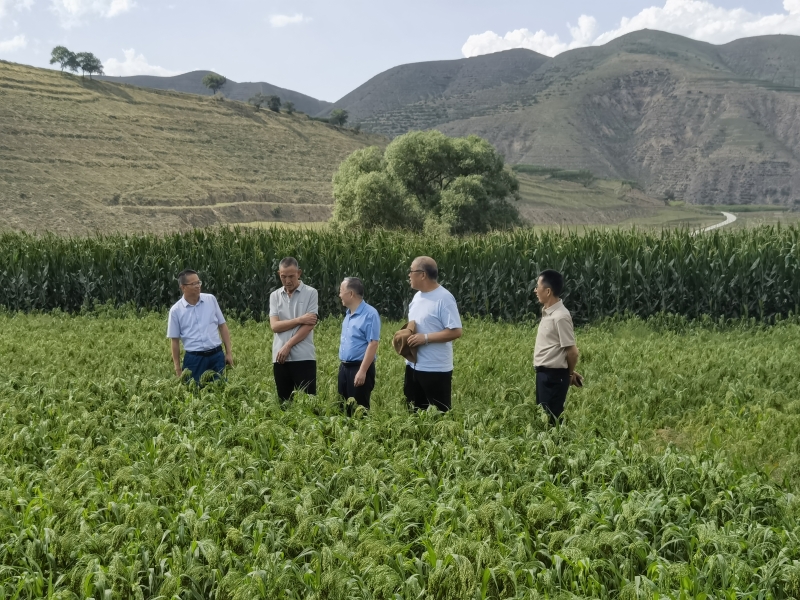 7月30-31日,院党委委员、副院长,国家谷子高粱产业技术体系科技特派团产业组组长杨天育带领产业组成员,赴会宁县开展旱情调研及抗旱技术指导。产业组先后在中川镇高陵村、糜岔村,大沟镇大沟村及老君镇文岔村、苏家堡村走访相关合作社,检查了产业组与合作社联合建立的糜谷新品种标准化示范片。通过走访座谈交流、田间调研和现场答疑等环节,掌握了前期推广示范品种在当地的综合性状及长势情况,解答了专业合作社关注的技术难题,并针对当前高温天气和干旱等不良气候条件提出了应对方案。其间,还与到会宁试验站调研的国家糜子联合育种攻关首席科学家、西北农林科技大学柴岩教授就糜子育种工作进行了探讨交流,会审了《中国之糜》专题片。