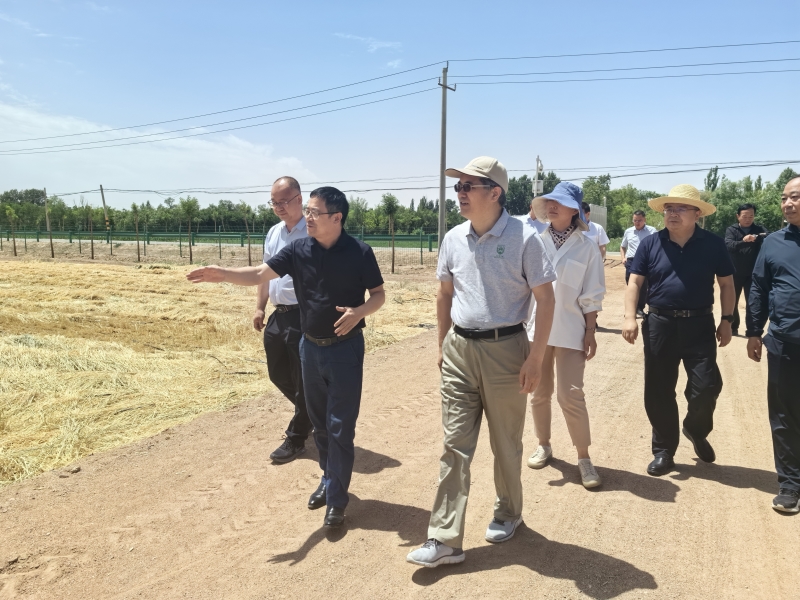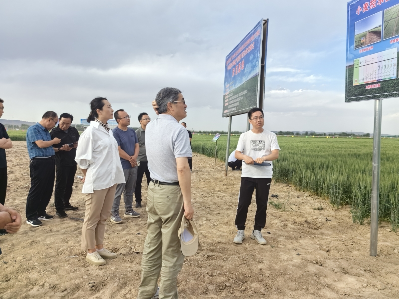 座谈会后,康绍忠、田青一行在金昌市副市长肖进银陪同下,先后赴金川区节水智能灌溉控制试验基地、金川区农业智慧灌溉高效节水示范基地、永昌县东寨镇浅埋滴灌小麦示范基地等现场考察,与地方农技人员、种植大户进行深度交流,详细了解当地农田灌溉及水资源利用现状。