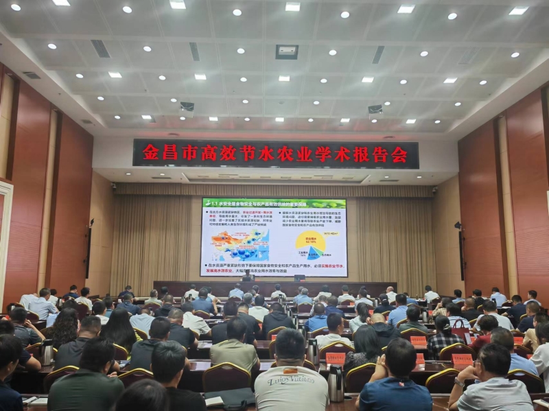 其间,康绍忠院士作了题为《中国农业节水十年——成就、挑战及对策》的学术报告,从农业节水的重大意义、农业节水取得的巨大成就、当前农业节水发展面临的主要问题与挑战、促进农业节水高质量发展的建议等方面,进行了全面、系统、深入的讲解。金昌市主要领导,市、县相关单位负责同志和调研组共计150余人参加。