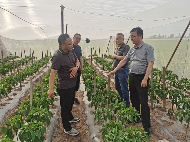 在绿星公司张掖试验基地查看制种辣椒种植情况