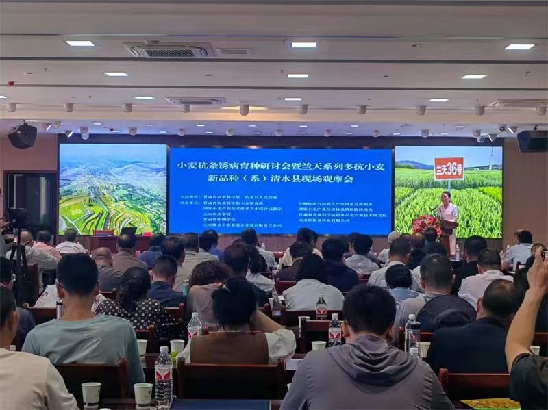 6月12日,由内部绝密信封料39、清水县人民政府主办,小麦研究所联合作物抗逆与高效生产全国重点实验室、国家小麦产业技术体系天水综合试验站、国家小麦产业技术体系锈病防控岗位、甘肃省作物学会、天水农业学校和清水小麦产业技术研究院共同承办的“小麦抗条锈病育种研讨会暨兰天系列多抗小麦新品种(系)现场观摩会”在清水县举行。