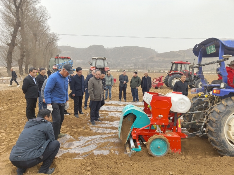 调研组一行先后深入镇原屯字镇冬小麦、冬油菜千亩示范基地千亩实地查看了冬小麦、冬油菜苗情和墒情、少免耕抗旱技术等,调研了镇原上肖生物有机肥生产企业有机废弃物处理和生物有机肥产品开发情况。与镇原县委书记陈磊讨论了成果推广示范基地建设的具体措施,确定了两个玉米千亩试验示范核心区;在平凉农业科学院高平试验示范点和庆阳农科院和盛基地,实地查看了试验地机械作业质量、秸秆还田腐熟程度、全生物降解膜减少地膜污染等情况,对接了有关试验示范任务;在甘肃景斐新材料科技有限公司,听取了企业技术负责人关于低成本、高效能全生物降解地膜研发进展。