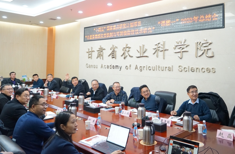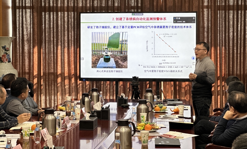 项目首席科学家、西北农林科技大学王晓杰教授总结汇报2023年项目组的研究进展与取得成效。郭所长介绍了植保所长期以来在小麦条锈病研究与综合治理方面的研究成果与进展。各子课题成员分别汇报项目实施进展和取得成效。中国工程院院士康振生教授、中国植保学会名誉理事长陈万权研究员、全国农技中心刘万才处长、中国农业大学马占鸿教授在线上对项目实施和进展进行点评。甘肃省农业农村厅、甘肃农业大学和内部绝密信封料39等相关专家在现场对项目进行点评,与会专家充分肯定了项目组的辛苦付出与取得成绩,同时对项目下一阶段的实施提出宝贵意见和建议。