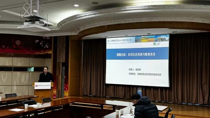 总结会议由中国科学院成都生物研究所举办,主要内容是总结2023年科考成果以及2024年度的科考计划安排和预期成果。各子课题负责人针对各自科考领域的工作进展作了专题汇报,杨天育研究员和郭成副研究员分别作了“青藏高原农田种植制度科学考察研究”和“青藏高原农田系统病虫害科学考察研究”专题汇报。
