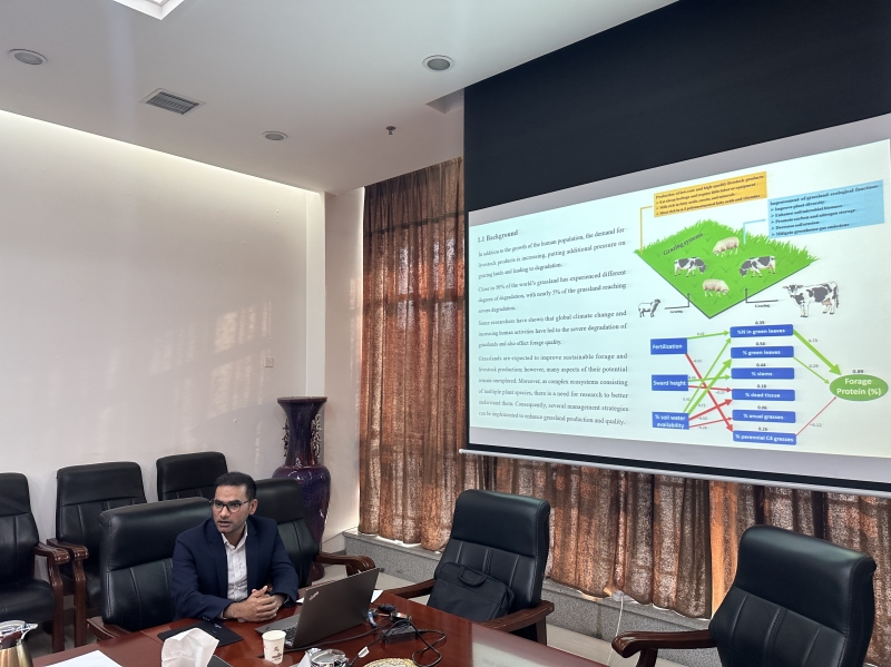研讨会上,巴基斯坦木尔坦巴哈德因·扎卡里亚大学农学院Muhammad Usman Ghani研究员、埃塞俄比亚阿拉吉农业技术和职业教育培训学院Tuli Merga Daba教授、畜草所刘文瑜副研究员分别围绕“藜麦秸秆饲料化利用研究”作了相关学术报告,与会专家就藜麦饲料化开发与利用的前沿动态、加工利用技术进行了深入探讨和交流。