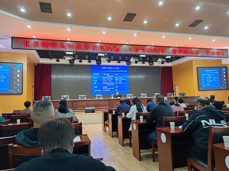 为促进甘肃农业科技创新发展,积极推动国际合作交流。10月10日,我院植保所依托科技部高端外国专家引进计划项目,邀请美国路易斯安那州立大学昆虫系L.D.Newsom特聘IPM教授——黄方能博士来我院进行合作交流,黄教授就“北美棉铃虫Bt抗性治理实施二十多年的经验、教训和启示”做了专题学术报告,报告采取“线上线下同步+现场交流答疑”的方式进行,内容丰富、现场交流热烈,参会人员一致表示受益匪浅。