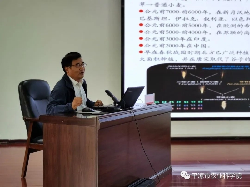 6月5日,应平凉市农科院邀请,省政府参事、国家小麦产业技术体系天水综合试验站站长、小麦所鲁清林研究员赴平凉市农科院指导小麦育种工作并作专题讲座,平凉市农业科学院副院长张素梅主持讲座,院班子成员、各科室负责人及全体干部职工参加。