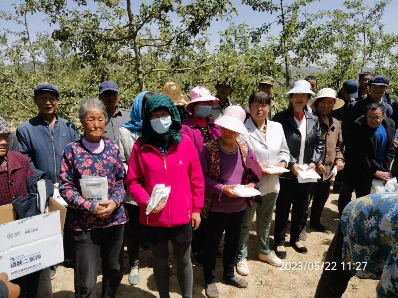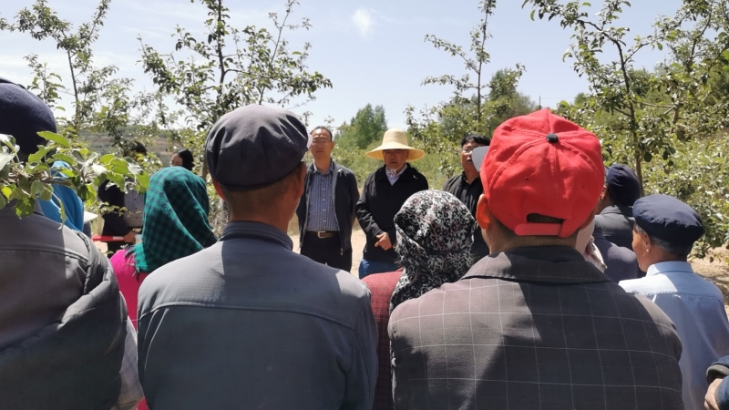 针对我省陇东苹果产区受到晚霜冻害及冰雹危害后田间管理进行技术培训和指导。马明研究员、董铁副研究员及县果树站王选强站长分别从苹果园土肥水管理、病虫害防治、夏季苹果树体管理等方面进行讲解并与果农就晚霜冻害防护进行了深入交流,详细解答了果农所提出其它疑难问题。本次培训得到了庄浪县科技局、庄浪县果树站、庄浪县盘安镇人民政府等各级领导的大力支持,共举办科技培训2场次,培训农户98人次,发放磷酸二氢钾260袋,通过此次培训和交流,提升了果农进行苹果生产的信心和决心。
