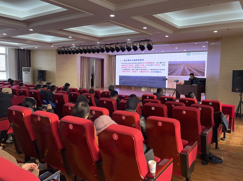 绿肥产业组组长车宗贤以“甘肃绿肥间套作生产技术”为主题的科技培训,针对会宁县绿肥产业发展现状,从适宜绿肥品种选择、绿肥插入农田果园间套复种技术、施肥措施、配套农机等方面进行了科技培训。会宁县28个乡镇和县农技中心的160余名农业技术人员参加了培训。