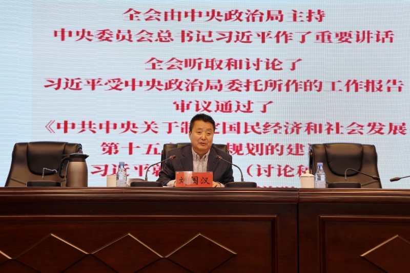 为深入学习宣传贯彻党的二十届四中全会精神,引导全院干部职工切实把思想和行动统一到全会决策部署上来,推动全会精神在院所落地见效,11月18日,我院召开党委理论学习中心组2025年第十九次学习(扩大)会议,专题宣讲党的二十届四中全会精神。会议传达学习了习近平总书记在党的二十届四中全会上的重要讲话精神,并就全会精神进行了系统宣讲和深入解读。党委书记刘国汉主持会议并作宣讲报告。院长、党委副书记常宏,院党委委员王琦、田青、李允、吕和平、陈文杰出席会议。