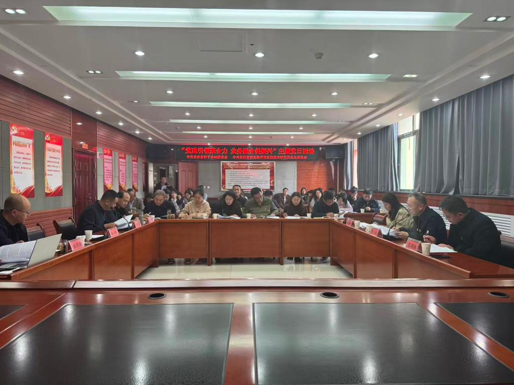 为深入学习贯彻党的二十大和二十届四中全会精神,推动党建与业务深度融合,10月30日下午,我院生技所党总支与甘肃省种子总站党委联合开展“党建引领聚合力、业务融合促振兴”主题党日活动。