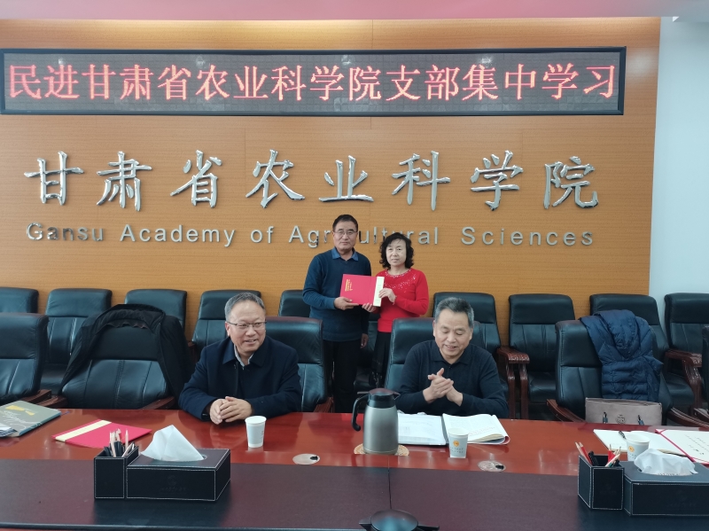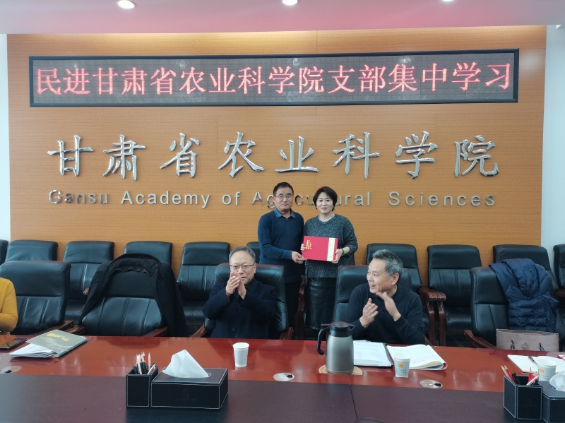 会上为获得“民进甘肃省委员会成立40周年突出贡献奖”的鲁清林、杜蕙研究员颁发了荣誉证书,对新入会的王淑英研究员和任娜助理研究员分别颁发了入会通知书。