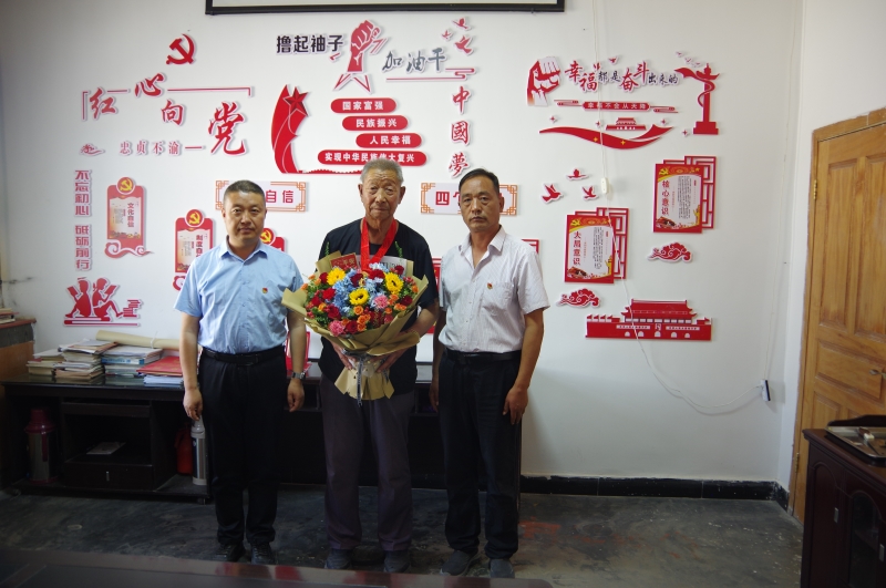 会上,黄羊试验站(场)党支部书记、站长杜明进为老党员高佩庆颁发“光荣在党50周年”纪念章,向长期以来一直关心、支持站(场)工作的老党员致以崇高的敬意和诚挚的感谢,并表示将继续用心用情为老党员做好服务,努力为实现老有所学、老有所乐、老有所为创造良好条件。