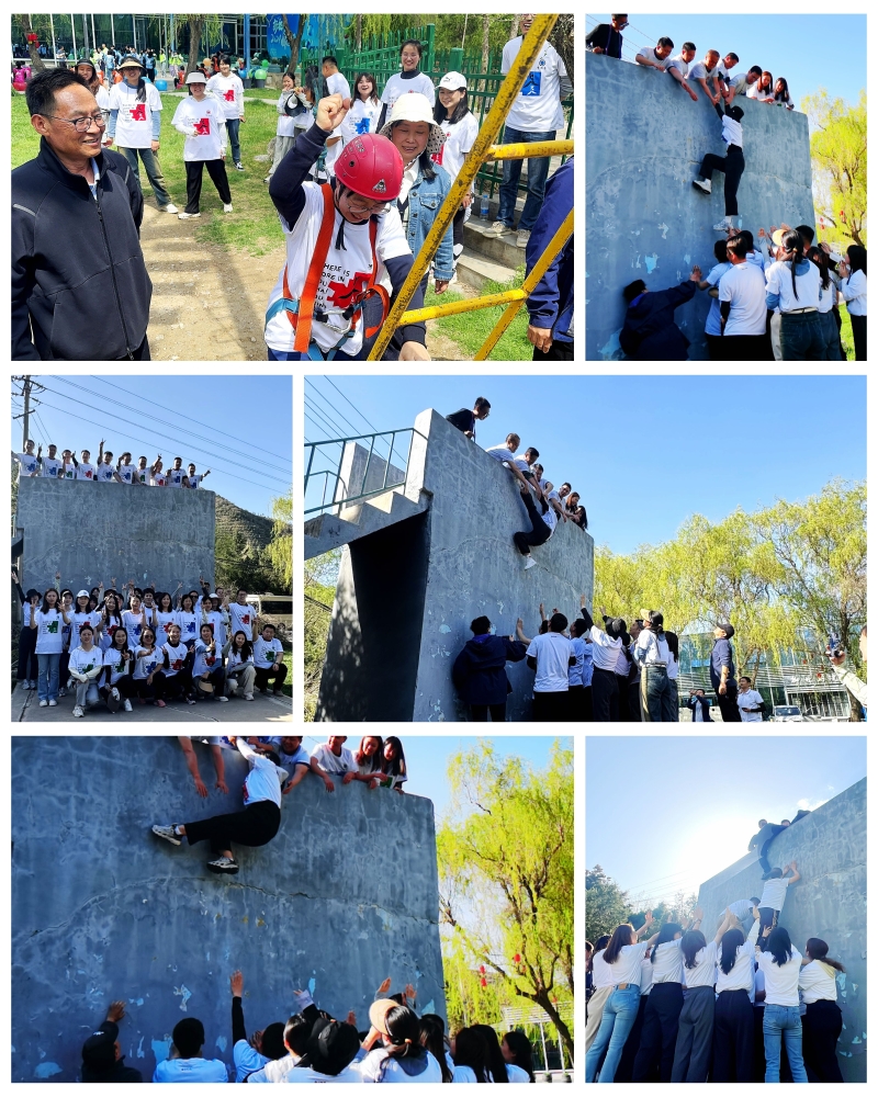 在茫茫的人海里我是哪一个,在奔腾的浪花里我是哪一朵……在《祖国不会忘记》的合唱中,拓展训练拉开帷幕。你看!“农科”青年们挥洒着汗水,勇毅攀登、甘为人梯......大家绽放青春热情,释放青春动能,加油声、欢乐声、喝彩声、鼓掌声此起彼伏,展现出“农科”青年朝气蓬勃、奋发向上的精神面貌。全国劳模、三八红旗手,先进代表和青年门融入在一起,为青年加油打气、补充“能量”,现场洋溢着欢乐祥和的气氛。此次素质拓展活动以团队为主体,采用体验式学习方式,从破冰开始,通过系列项课程,帮助青年们迅速熟悉并建立信任,锻炼组织协调和沟通能力,让大家体会分工与执行的重要性。本次活动是党建带团建的具体实践,旨在强化青年职工团队意识、合作意识,在增强战斗力、凝聚力的同时,使新职工以昂扬奋斗姿态融入新时代“农科”文化中。院团委、青工委,2023年以来新入职人员、青年代表50余人参加活动。