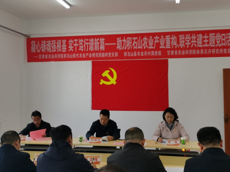 林果花卉研究所党总支、积石山现代农业产业研究院临时党支部、积石山县农业农村局党组全体党员,来自省内外专家,院党办、院团委、青工委有关同志,积石山县银川乡种植户、技术人员300余人参加了此次活动。