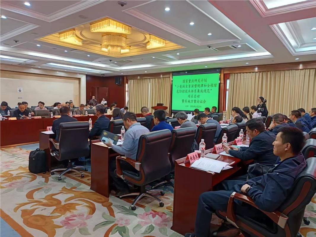 3月22-23日,由中国农业科学院植物保护研究所牵头实施的国家重点研发计划项目“小麦病虫害演替规律与全程绿色防控技术体系集成示范”启动会在北京召开,项目咨询专家宁波大学植物病毒所所长陈剑平院士,西北农林科技大学康振生院士,农业农村部种植业管理司二级巡视员王建强研究员,全国农业技术推广服务中心首席专家刘万才研究员,河南农业大学、农业农村部农药检定所、河南省农业科学院有关专家、我院植保所张海英、黄瑾副研究员和来自全国20家项目参加单位70名人员参加会议。