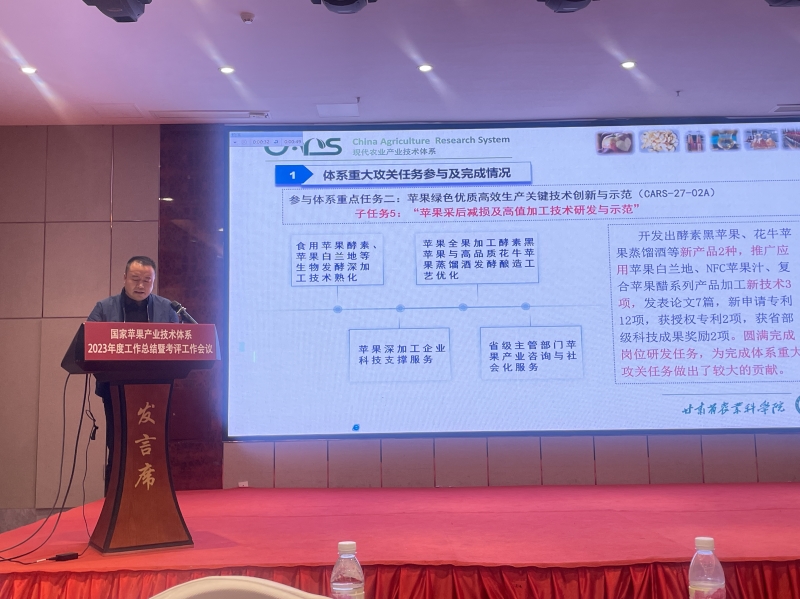 林果花卉研究所苹果体系平凉综合试验站站长马明研究员与团队成员孙文泰副研究员、农产品贮藏加工研究所苹果体系产品加工岗位科学家康三江研究员参加了工作总结述职及考评会议。