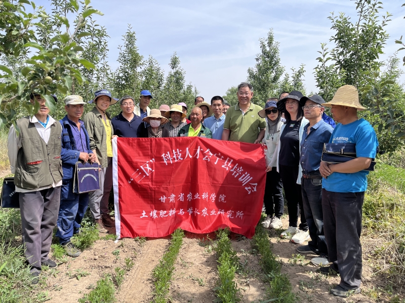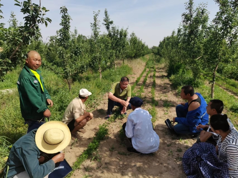 为深入推进“三区”科技服务工作,6月11日,土壤肥料与节水农业研究所车宗贤研究员带领科技人员一行赴会宁县河畔镇中滩村甘肃甘福果业集团有限公司开展果园绿肥“三区”科技服务工作。