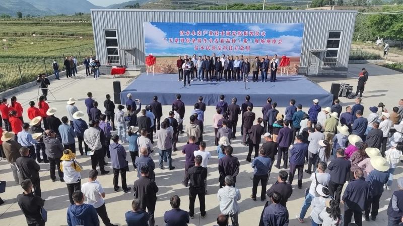 6月14日,由我院和清水县人民政府共同主办,国家小麦产业技术体系天水综合试验站、小麦研究所、天水农业学校、省作物学会和清水县农业农村局联合承办的“兰天系列抗条锈病冬小麦品种(系)现场观摩会暨清水试验站科技开放周”活动在清水试验站举行。院长马忠明、院党委书记刘国汉、副院长杨天育、天水市副市长董小平,天水市政协副主席、清水县委书记马越垠,清水县委副书记、县长李菊霞,天水农业学校党委书记朱建章等领导出席观摩会。活动邀请中国农科院、中国科学院、四川省农科院、贵州省农科院、西北农林科技大学、甘肃农大、省科技厅、省农业农村厅、省种子总站、省农技总站和省植保站相关领导和专家以及庆阳、平凉、陇南、天水、定西五市各县区农业农村局、科技局、农科院(所)、种子站、农技中心和天水农校、甘肃林业职业技术学校、陇东学院及我院相关研究所、机关处室等62家单位(部门)和甘肃百谷园农业科技有限公司、徽县华澳种子、天水旺泽泉种业、陕西隆丰种业、陇南民乐种业等10多家种业企业(合作社)的260余位代表参加。