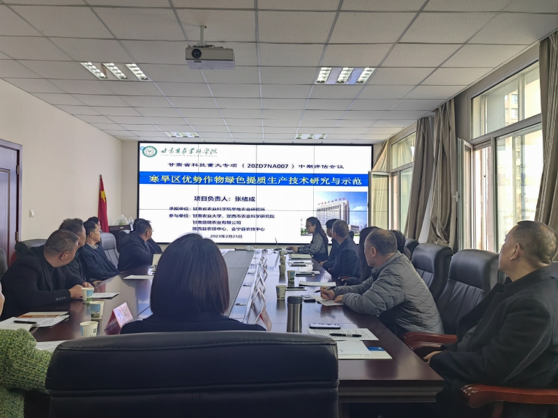 2023年2月25日,甘肃省科学技术厅组织有关专家,对我院旱农所主持的甘肃省科技重大专项“寒旱区优势作物绿色提质生产技术研究与示范”进行了中期评估。会议邀请院长马忠明、甘肃省农业技术推广总站研究员李世成、兰州市农业科技研究推广中心研究员谢成俊、甘肃农业大学教授刘学录、定西市农业科学研究院研究员张明组成专家组,科技厅农村科技处处长王芳与会指导。