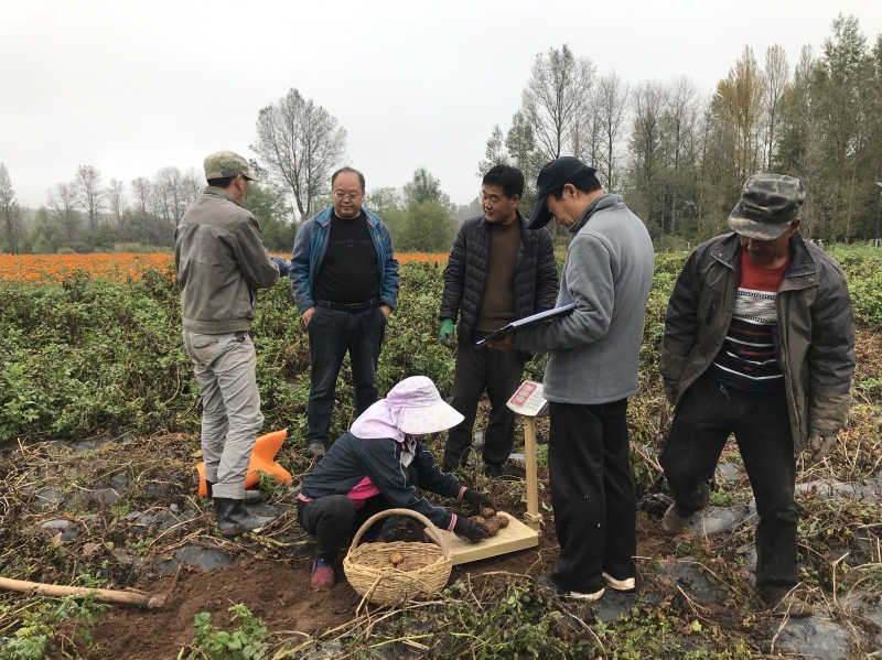 在专家服务团的3个示范基地,引进国内不同类型马铃薯新品种25个,筛选出符合市场需求的鲜食菜用品种陇薯10号、甘引薯9号、京张薯1号,淀粉加工型品种陇薯15号,全粉加工型品种陇薯16号和甘农薯7号。全粉加工型马铃薯品种陇薯16号在示范基地获得丰收,亩产达2351kg-3130kg;组装配套的技术模式示范亩产3131.5kg,较对照增产38.4%。在渭源县五竹、上湾、锹峪扩大自主培育品种陇薯10号示范,每个示范村示范种植25亩,在2022年旱情较为严重的情况下,品种抗旱性得到彰显,普遍受到种植农户的赞誉。服务团先后邀请各类专家41人次,组织开展技术培训9场次,培训各类人员623人次,发放马铃薯实用栽培技术、马铃薯脱毒种薯繁育与质量控制技术和疫情防控200问等技术资料300余份;通过电话等通讯手段远程提供技术咨询15次,指导专业合作社3个,对接专业项目6个。展示和示范基地先后接待有关部门领导、专家和技术培训学员等1200人次,成为新品种、新技术对外展示宣传、观摩学习和技术交流的窗口。