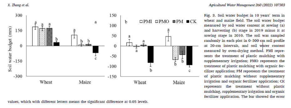 近日,旱农所作物栽培与生理生态研究团队在Agricultrural Water Management(JCR和中科院1区,IF:4.516)在线发表了题为“Can organic carbon and water supplementation sustain soil moisture-carbon balance under long-term plastic mulched semiard farmland?”的研究论文,通过10年定位试验分析了地膜覆盖种植条件下,玉米和小麦10年连作对土壤水碳平衡的影响。