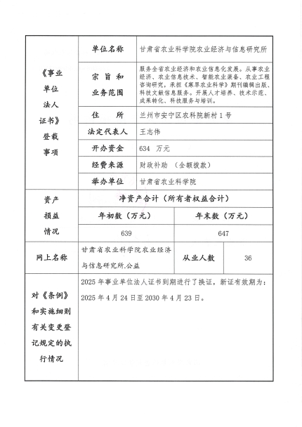 根据甘肃省事业单位登记局法人证书年检流程,现将我单位2025年度事业单位法人年度报告书予以公示,对报告书填写内容的真实性给予监督。