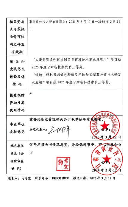 根据甘肃省事业单位登记管理局法人年检流程,现将我单位2025年度事业单位法人年度报告书予以公示,对报告书填写内容的真实性给予监督。