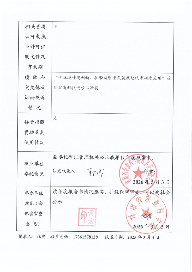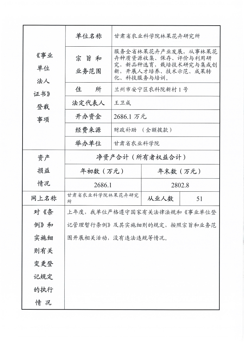 根据甘肃省事业单位登记局法人证书年检流程,我单位法人证书的年检报告书需在院局域网上进行公示,现将我单位2025年度事业单位法人年度报告书予以公示,对报告书填写内容的真实性给予监督。