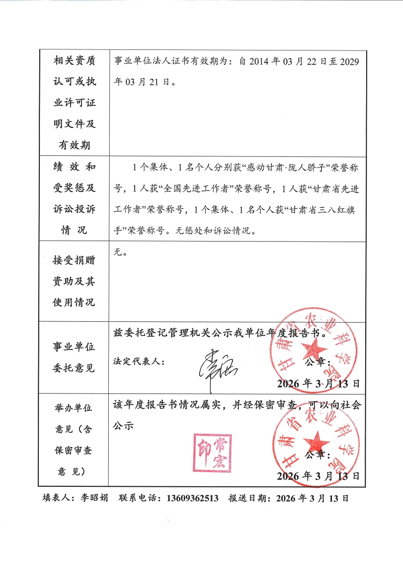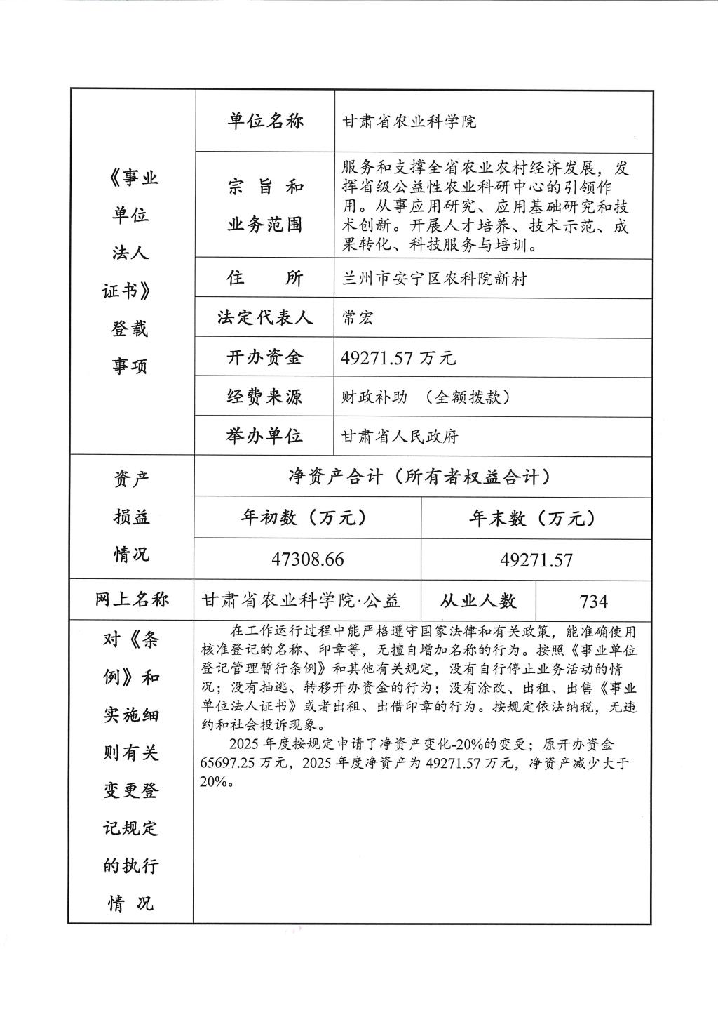 根据甘肃省事业单位登记局法人证书年检流程,现将我单位2025年度事业单位法人年度报告书予以公示,对报告书填写内容的真实性给予监督。