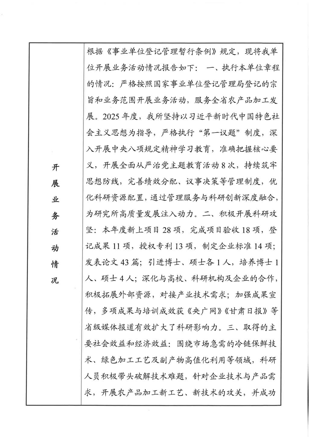 根据甘肃省事业单位登记局法人证书年检流程,现将我单位2025年度事业单位法人年度报告书予以公示,对报告书填写内容的真实性给予监督。